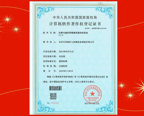 防靜電輸藥管精確量控制系統(tǒng)著作權登記證書