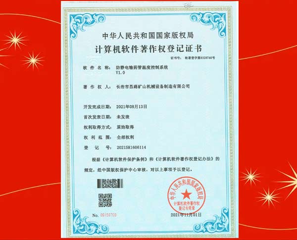 榮獲防靜電輸藥管靜電值監(jiān)測系統(tǒng)著作權登記證書